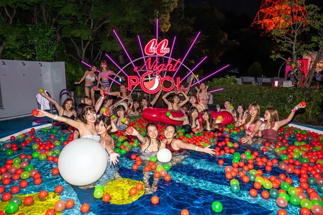 イベント後は、この日集まった100人の読者がナイトプールへ。まだ水温も冷たいにもかかわらず、あちこちでスマホを構え、自撮りをして楽しんでいた。