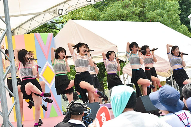 その後は、先輩グループであるJuice=Juiceのラテン調な楽曲『Fiesta! Fiesta!』、モーニング娘。'19のダンスナンバー『泡沫サタデーナイト!』という2曲を披露。自分たちの楽曲にこだわらず、夏のアツさと真っ向勝負するかのような選曲に、このTIFへのギラギラした気合いを感じさせる。