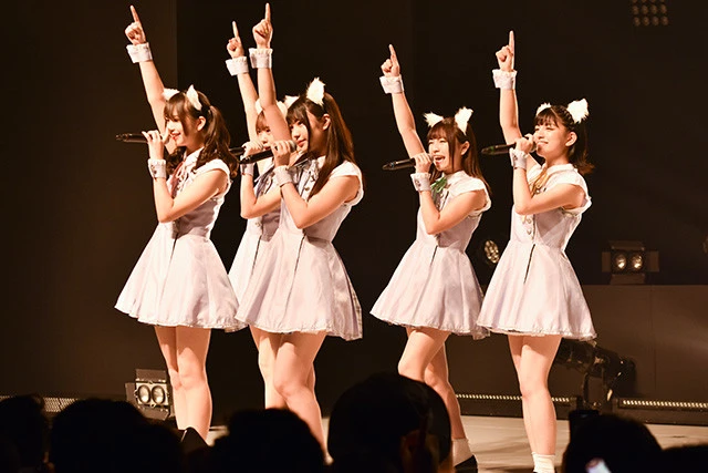 不安だけではなく、ありとあらゆる感情が入り混じったであろう小玉が涙を流す。三品瑠香は彼女を鼓舞するように「こんなことに負けず、私たちと最高に盛り上がって。大きい声をぶつけてきてください」と静かに煽り、大声で『PLATNIC GIRL』をタイトルコール。彼女たちは、トレードマークの猫耳が吹っ飛ぶほどの鬼気迫るパフォーマンスを魅せ、最後は笑顔で『プリティー☆チャンネル』を歌い、ステージをあとにした。