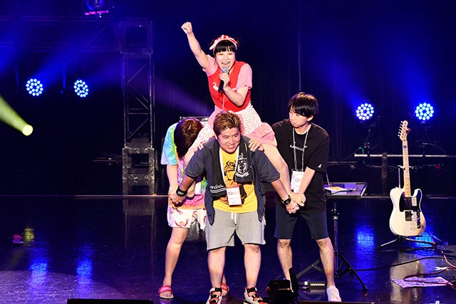 中盤は、彼女たちのお家芸ともいえる"夏曲"ラッシュ。『秒で終わる夏』ではファンを一旦座らせたあとに勢いよくジャンプさせ、『FRESH!!!』ではファンとともに「うっあっ♪ うっうっあっ♪」とアイドルらしくシンガロング。『夏休みのBABY』でも「夏最高! 夏最高!」と叫びながら連続ジャンプ! ニカーっと笑顔を浮かべながら、膝を折りたたんで飛び跳ねるhinakoを筆頭に、前半とはうってかわって彼女たちのアイドル性で会場を盛り上げていく。
