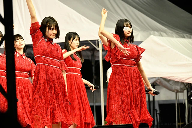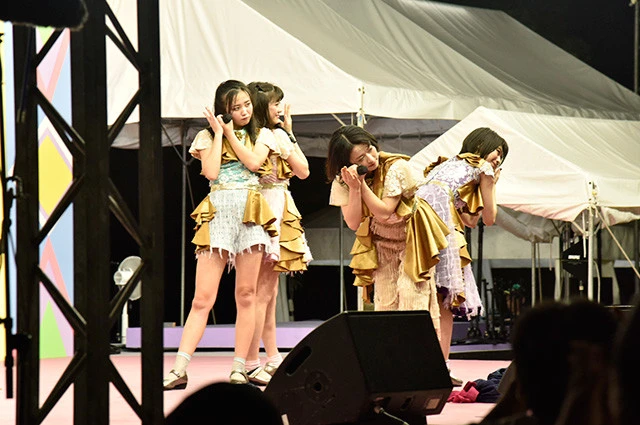 坂元葉月のマイクに電源が入らないハプニングがあったが、小玉梨々華が踊りながら坂元をマイクフォローをしたり、ほかの3人も坂元のパートを歌ったりと全力カバー。坂元自身がマイクを通さず大声で歌う場面もあり、「どんなことにも屈しない」という彼女たちの精神力の強さがうかがえた。
