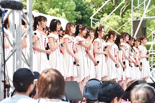 キャプテンを務める岡田奈々はAKB48のコンサートのために欠席となったが、その代わりに榊 美優がフロントポジションに入り、層の厚さを見せる。