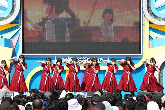 秋元康プロデュースによる声優アイドルグループ22/7。坂道シリーズのような清楚な声優メンバーたちが、映像の中の2次元メンバーと一緒に踊るパフォーマンス。