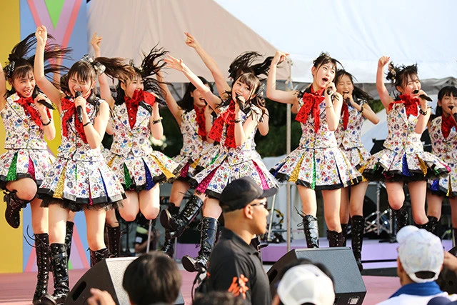 そしてラストは『No WAR in the future』。ステージで何度も飛び跳ねる17人を見ていると、SMILE GARDENの「ジャンプ禁止」というルールが心底惜しくなる。ただ、そのフラストレーションは、自分の右手に集約させて突き上げればいい。明らかに"今年の主役"とも呼べる彼女たちは、多くのアイドルファンを沸かせてステージをあとにした。