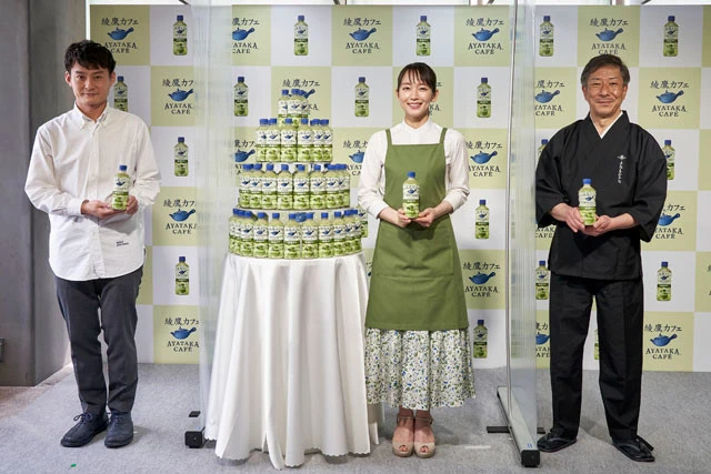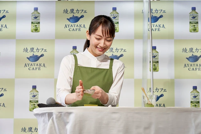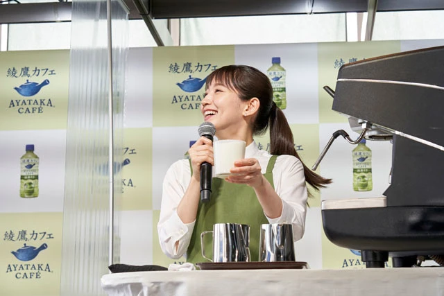 イベントに登壇した吉岡は『綾鷹カフェ 抹茶ラテ』を試飲し、「甘さがすっきりしている印象で、抹茶の香りとコク。そしてミルクがやさしくて、口当たりのよさを感じます」と、抹茶のうまみを堪能した。