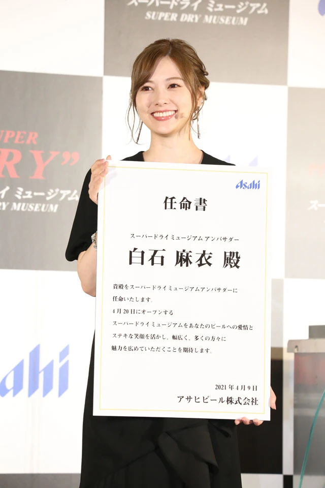 アサヒビールの「スーパードライミュージアム」が茨城県・守谷市にあるアサヒビール茨城工場内に4月20日オープン。それに先駆けてミュージアムのオープン記念アンバサダーを務める白石麻衣の就任式が9日、行なわれた。