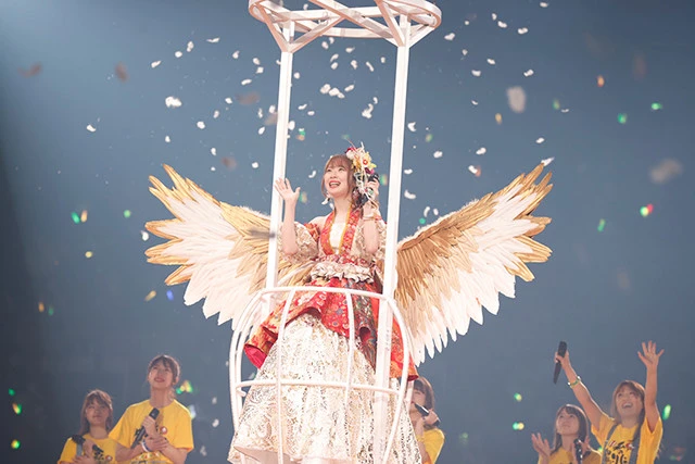 最後の曲に選んだのは『道はなぜ続くのか?』。涙で終わるかと思いきや、菩薩のようにほほ笑む彼女。「完璧なアイドルではなかったですけど、本当に悔いのない最高に幸せなアイドル人生でした。SKE48に出会えて幸せでした。こんなにニコニコ終わるって自分でも思ってなかったです。もっとワーってなるかなって思ったんですけど......。幸せだったんです。本当にありがとうございました!」と語り、鳥好きの高柳らしい羽の付いたゴンドラへ乗って天空へ羽ばたいていった。
