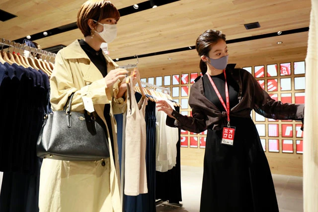 会見後、実際に店舗に立った今田は、「いらっしゃいませ」とぎこちなく来客に声をかけたが、「メンズの商品で大きめですけど、似合う」「このパンツ、(履き心地が)めっちゃ楽なんです!」と商品説明や試着への案内など、スムーズに接客。