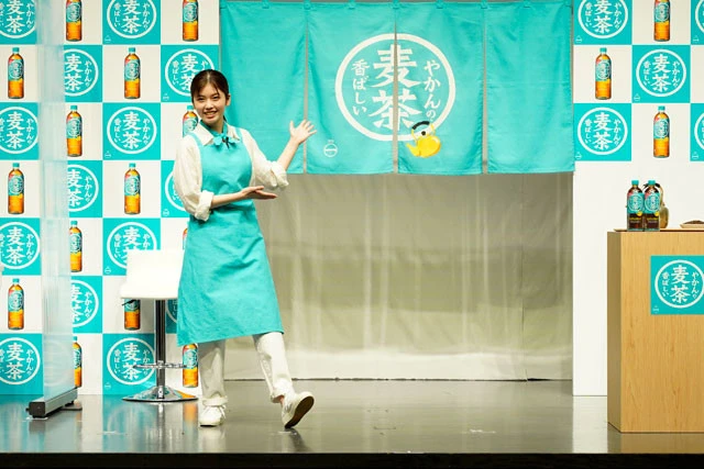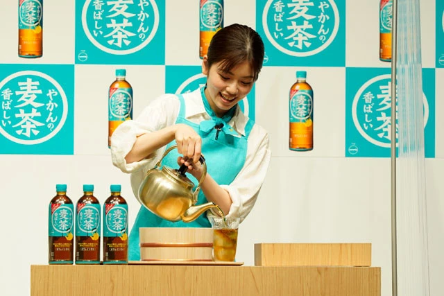 CMで麦茶屋の店主役として登場する小芝は、「めちゃくちゃ香ばしいんですけど、クセがなく、ごくごくごくって飲みたくなる」とアピール。そして、CM中に何度も麦茶を飲んだが、「おいしい麦茶は大量に飲んでも苦しくないんだって思いました」と明かした。