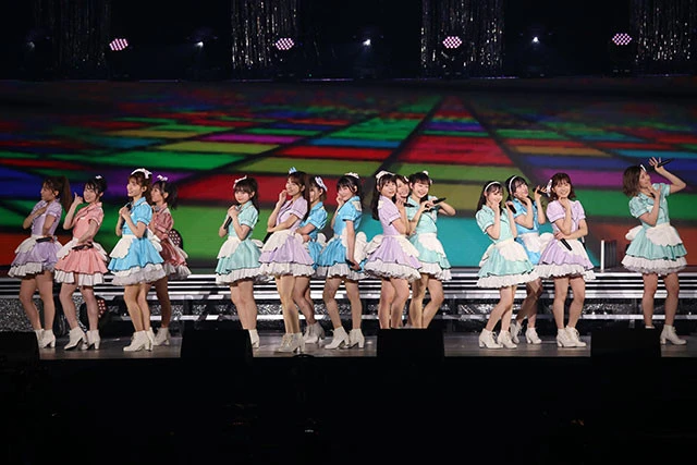 一番の盛り上がりポイントである本編ラストブロック。通常のコンサートはシングルメドレーになりがちだが、今回は『ファースト・ラビット』、『Only today』、『君と虹と太陽』など、シングル曲ではないが、テンションブチ上がりな曲も混ぜ込む構成。そしてラストは、ファンのへの感謝を歌った『ファンレター』。メンバーが挨拶をしながら、ステージを降りていく。