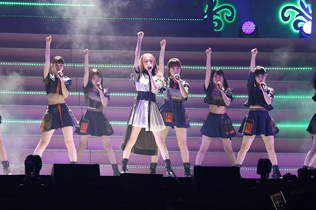 そしてサプライズも。神曲『大人列車』のイントロとともにステージ奥、白いスモークの向こうに浮かぶシルエット。兒玉遥の登場だ! 宮脇とは"さくらっぴ"として、グループをともに引っ張った関係性。だが体調不良により1年以上活動休止のまま、ひっそりとグループを卒業。2度とHKTのステージに上がることはないと思われていただけに、ファン号泣案件だ。