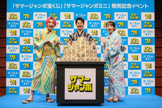 今年のサマージャンボ宝くじは1等・前後賞あわせて7億円が、サマージャンボミニは1等・前後賞あわせて5000万円。8月13日まで発売される。現在放送されているCMでは、妻夫木、吉岡がきょうだい役で登場。またその次女・ミオ(今田美緒)の彼氏として兼近が出演している。