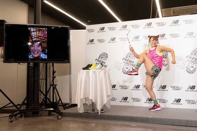 フワちゃんが10日、都内で行なわれたニューバランスの「『FRESH→HOME CAMPAIGN&新商品』発表会」に出席。同社が販売している最新の「FRESH FOAM」シリーズの履き心地に感激した。