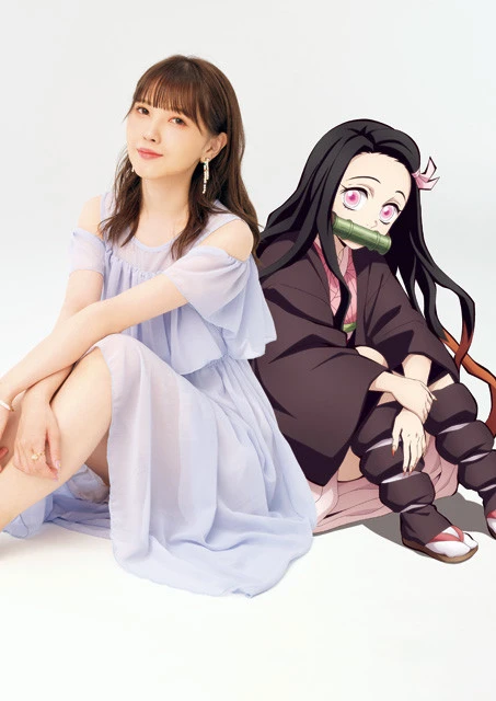 『鬼滅の刃』で禰豆子(ねずこ)役を演じる声優・鬼頭明里さんと禰豆子のツーショット