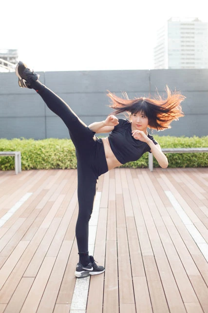 テコンドー4段、龍武道4段、合気道4段、格闘技2段、カンフー初段、柔道初段、剣道初段とあらゆる武術を会得する彼女。武道を始めた意外なきっかけを語った。