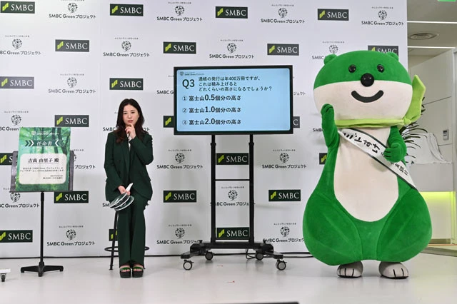吉高由里子が15日、都内で三井住友銀行の「SMBC Green プロジェクト」の発表会に出席。意外な通帳の事実に驚いていた。