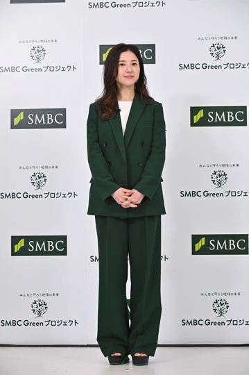 SMBCカラーである濃いグリーンのスーツ姿で登場した吉高は、「すごい一生懸命探してくれたみたいで、より近い色のスーツを着させてもらいました。(SMBCのロゴと)ばっちり同じですね」とご満悦。