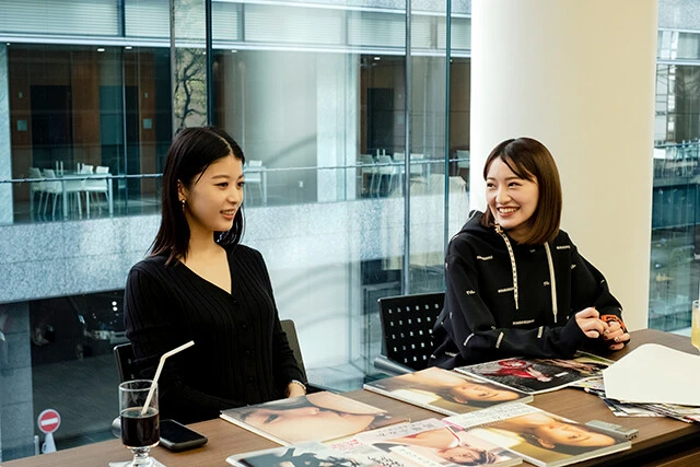 馬場 それまでは、グループアイドルのコとは......もちろん『non-no』の撮影で会ったりとかはあるけど、そこまで深く関わることがなかったので、どういう生活をしているのかもわからないし、仲良くなれるかもわからなかったけど、会っていったらすごく面白かったんですよね、花奈ちゃんの話が。麻雀やってて、雀荘を自分でつくって、店にも立って、プロ試験受けて。生き方があまりにも違うし、考え方もけっこう違うから、異文化交流じゃないですけど、そういう面白さを感じました。