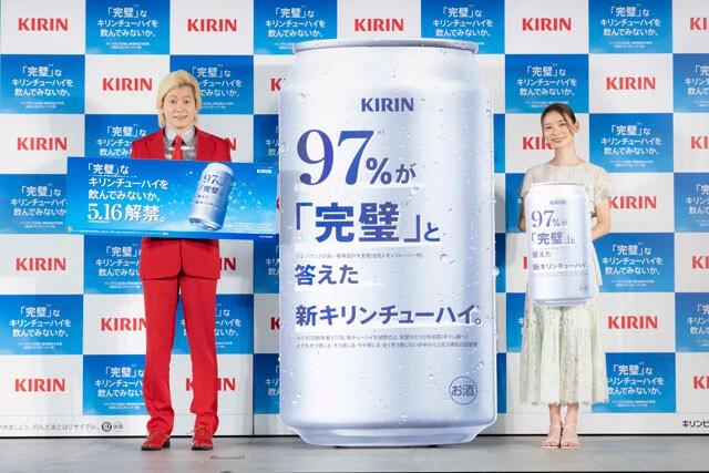 商品の詳細は5月16日(月)に解禁。また現在は「完璧な新キリンチューハイ 100万本体験」が行なわれており、商業施設でのサンプリングや、SNSの抽選によって先行体験できる。