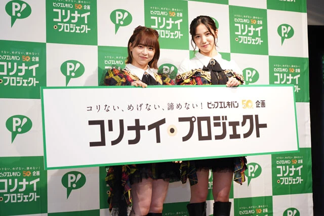 ピップエレキバン発売50周年を記念して発足した「コリナイ・プロジェクト」の発表会が5月31日、都内で行なわれ、アンバサダーに就任したAKB48の倉野尾成美(くらのお・なるみ)と下尾みうが登場。"肩がコリにくい衣装"への期待を語った。