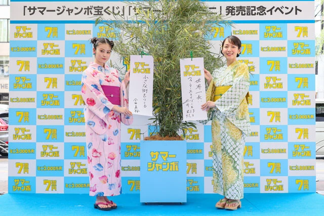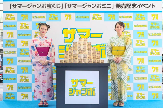 吉岡里帆と今田美桜が5日、都内で行なわれた「『サマージャンボ宝くじ』『サマージャンボミニ』発売記念イベント」に登壇。浴衣姿で登場したふたりは、仲睦まじい様子を見せた。