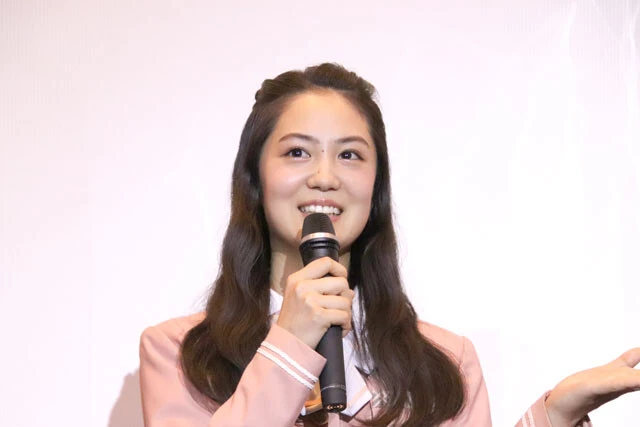 撮影について聞かれた伊達は「エンドロールのオフショット、見ました? 本当に楽しかったんです」と話すも、緊張したのか「誰か一緒に喋ろう?」と小椋にパス。小椋「ずっと楽しくて撮影中もふざけたりしてて、その時に私と花彩で作ったものがあって、歌を作ったんです」と笑顔で、ふたりはその場でダンスを交えた歌を披露し、その楽しさを伝えた。また、渡邊も「ライブシーン、真冬とは思えないくらい天気がよくて、気持ちがよくて。シャボン玉もみんな、うるさいくらいウキウキしてました」と明かした。