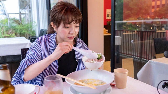 今をときめく人気女優とともに、注目のラーメン店を巡るラーメン完食企画! 第3回は、NHK連続テレビ小説「ちむどんどん」に出演するなど、女優として活躍中の村田寛奈(むらた・ひろな)が、名古屋の人気店でラーメンをすすりまくる!