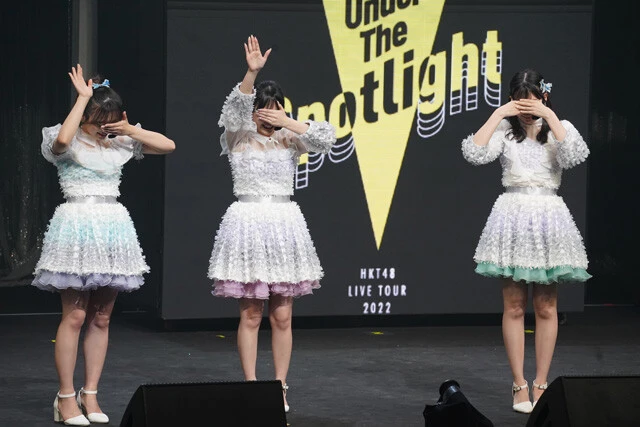 HKT48のコンサートツアー「HKT48 LIVE TOUR 2022~Under the Spotlight~」の福岡公演が7月23日(土)、福岡市民会館で行われた。このコンサートは4月より神奈川、東京、愛知、熊本、大阪と全国を回ってきたツアーのファイナルで、体調不良のメンバーを除く53名が登場。8月末の卒業を控えた1期生の松岡菜摘、2期生の神志那結衣にとっては最後の大きなコンサート出演となった。