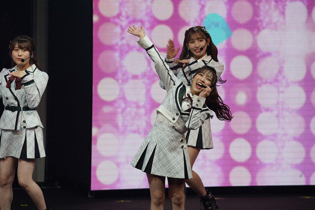 オープニングからど派手な映像をバックに『止まらない観覧車』、『突然Do love me!』、『意志』と熱いダンスナンバーで会場を盛り上げ、最新シングルでセンターを務める矢吹奈子は「4月から始まったツアーもラスト、今までで一番の思い出にしましょう!」と意気込む。