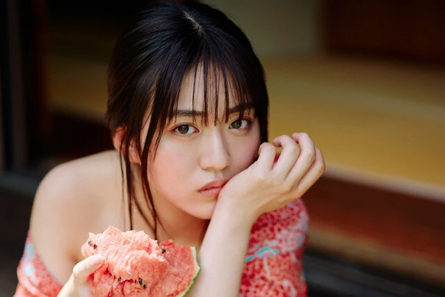 『夏の魔法。』撮影/熊谷貫 価格/1100円(税込)  昨年に引き続き、週プレに刻んだ夏の思い出。『トリガー』の放送を駆け抜け、20歳を迎えて。ひとりの女優として、大人の女性として、開放的に自分を表現しようとしている無垢な少女の瞳は、実に艶やか。大きなスイカを頭からガブリ! 口周りが汚れても気にしない。「優等生を」イメージ覆すほどのワイルドな仕草に、彼女の本心を見た気がします。そして降りかかる、夕立という名の