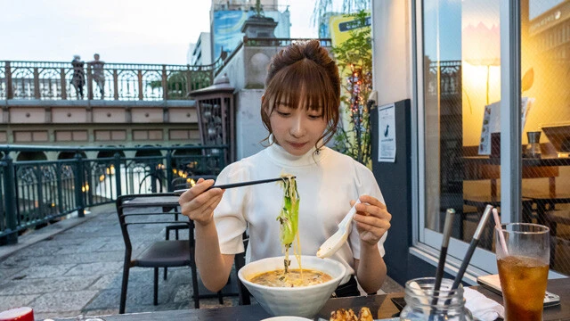 今をときめく人気タレントとともに、注目のラーメン店を巡る! 第11回は青春恋愛リアリティーショー『今日、好きになりました。』で話題となり、今やZ世代を代表する女優・石川翔鈴(いしかわ・かれん)が、名古屋の人気店でラーメンをすする!