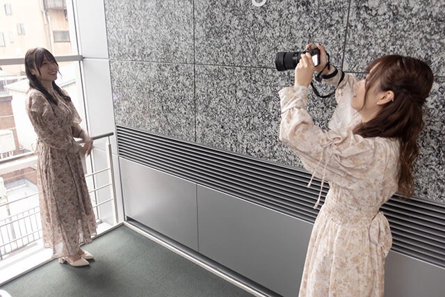 直田 私は仕事以外では自分で写真を撮らないので、先ほどもこんな素敵な本物のカメラを触って結構難しいなって思ったんですが、ちはるんが壁を使ったりなどして良いショットを自ら生み出してくれるので頼っていきたいです。