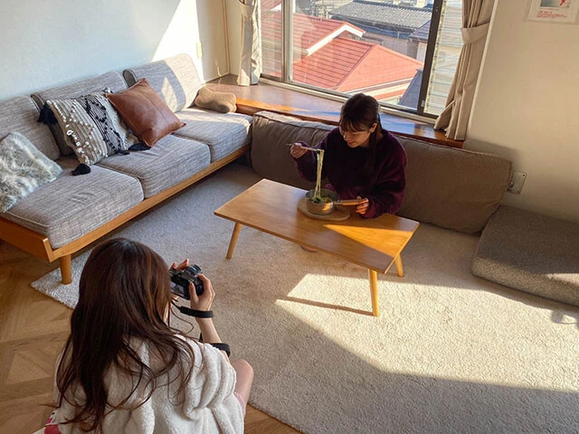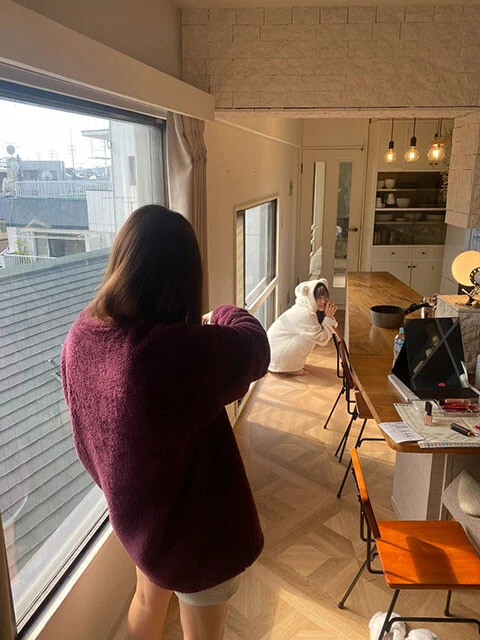 まるで同棲してるかのような千春さん(右)と直田姫奈さんの撮影オフショット