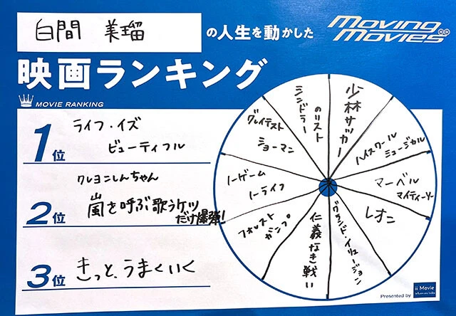 白間 『シンドラーのリスト』(1994年)とか『ライフ・イズ・ビューティフル』(1999年)とか、第2次世界大戦中のお話が特に好きですね。見終わった後は「本当にこういう悲劇が起こっていたん?」「自分は今すごく幸せやから、もっとがんばろう」って考えちゃいます。