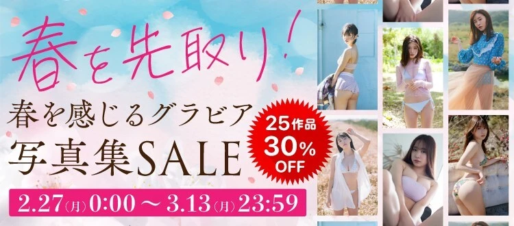 現在【週プレ グラジャパ!】では、「春を先取り!春を感じるグラビア写真集セール」を開催中です! 「春」をテーマにしたデジタル写真集から、"アオハル"ど真ん中なモデルのデジタル写真集など、春を感じる作品としてセレクトされた25作品が30%OFF価格でおトクにゲットできちゃいます。期間は、2月27日(月)から3月13日(月) まで。