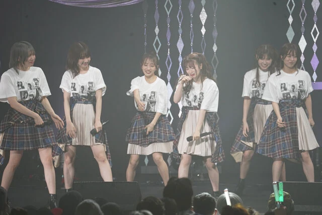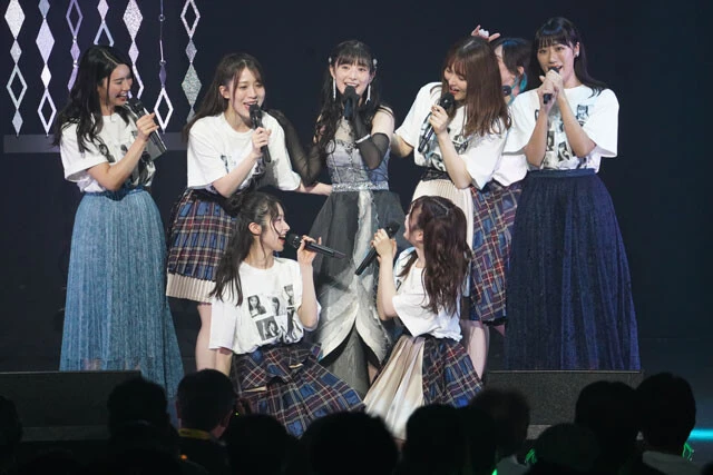 武藤 嬉しかったですね。本当に優子さんがいたから、今の自分が本当にあると思っているので、こうやって直筆で手紙を書いてくださって、どこまでもお世話になっているなと思いながら。やっぱり優子さんの背中を追いかけることで、自分らしさっていうのを、このグループで見つけることができたので、これからも夢は優子さんとの共演かなと思って頑張っていきたいと思います。 コンサート終盤、涙をこらえきれない武藤小麟(右から3人目)