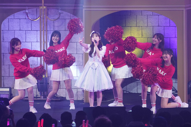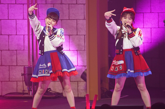 10年来の相棒である田中美久との『生意気リップス』では、最初に猪原絆愛と安井妃奈の小学生ペアが登場し、当時のたわいもない子供のケンカを再現。そして大人になった今のふたりが登場し、会場は大盛り上がり。最後に仲良くふたりで手を繋いでステージの裏へ向かう姿は、当時から知る古参ファンにとっては思わず涙の演出だ。なこみくによる『生意気リップス」