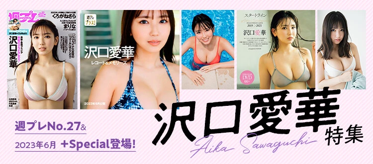 現在、【週プレ グラジャパ!】では、沢口さんの週プレ表紙・巻頭グラビア(6月19日発売『週刊プレイボーイ27号』)掲載と、【週プレ グラジャパ!】のサブスクリプションメニュー【週プレ プラス!】で配信されている「+Special」6月下期への登場を記念して、「沢口愛華特集SALE」を開催している。