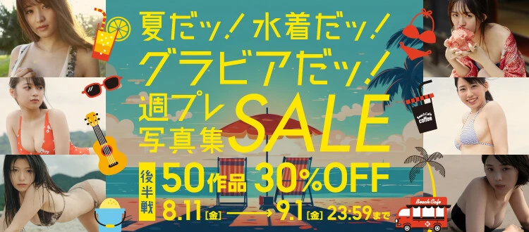 現在、【週プレ グラジャパ!】では、人気デジタル写真集100作品が30%OFFでおトクにゲットできる「夏だッ!水着だッ!グラビアだッ!週プレ写真集SALE」が開催中です。