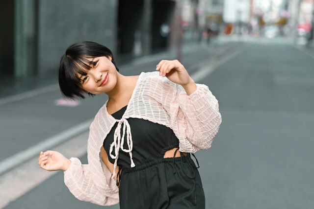 桑島 中学生の頃ですね。規律が厳しめのバスケ部に所属していて。暗黙の了解で、部の伝統としてショートにしなきゃいけなかったんです。何なら小学生の頃は、腰につくくらいロングだったんですよ! 実は最近も、一瞬だけエクステをつけてロングヘア気分を味わっていました。まぁ、圧倒的にショートカットが楽ですけどね。われながら似合っていると思いますし(笑)。