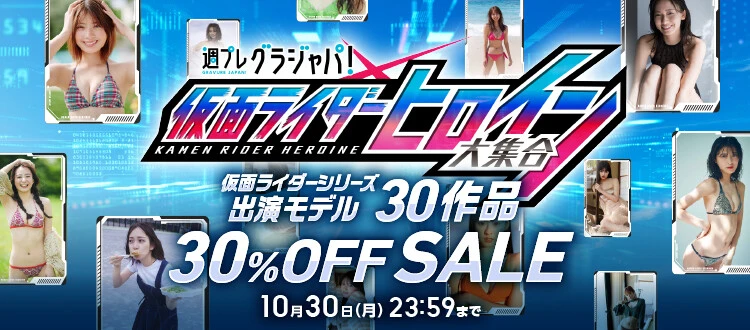 現在【週プレ グラジャパ!】では、歴代の仮面ライダーヒロインが大集合した『週刊プレイボーイ44号』の発売を記念して、「仮面ライダーヒロイン大集合SALE」を開催中しております。10月16日(月)から10月30日(月)までの期間限定で、「仮面ライダー」シリーズに出演経験のあるモデルのデジタル写真集30作品を30%OFFでお届け!