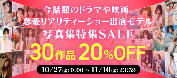 【週プレ グラジャパ!】では、現在「ドラマや映画、恋愛リアリティーショーで活躍中のあの子の写真集特集セール」を開催中しております。10月27日(金)から11月10日(金) までの期間限定で、ドラマや映画などで活躍するモデルのデジタル写真集30作品を20%OFFにてお届けします。