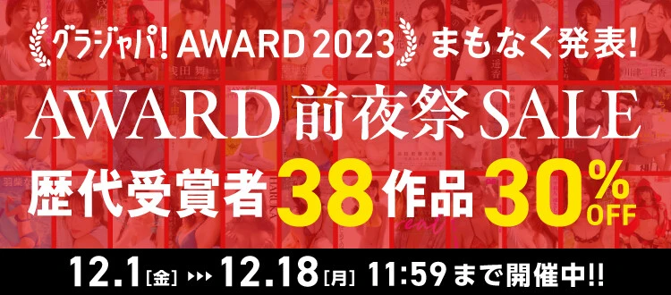 「週プレ グラジャパ!」では、毎年12月に1年間のグラビアを総括&活躍したタレントさんを表彰する「グラジャパ!アワード」を開催しています。今年の受賞者の発表は12月18日。それに先駆けて【週プレ グラジャパ!】では、「グラジャパ!AWARD前夜祭SALE」を開催中です。12月1日(金)から12月18日(月) までの期間限定で、過去の受賞者のデジタル写真集38作品を30%OFFにてお届け!