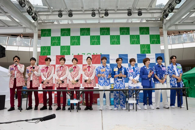 朝から天気が良く暑い中、屋外でのイベントがスタート。ステージにSHOW-WAと MATSURIの12名が登場すると会場からは歓声が。まずはメンバー全員が一言ずつ挨拶し、「この半年間、すべてをこの活動にかけてきました。今日は僕たちの運命を皆さんに託します!」(SHOW-WA・山本)と意気込んだ。