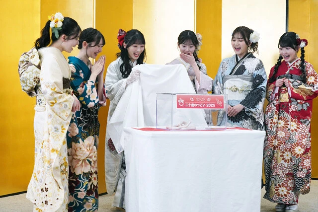 毎年恒例となっているAKB48「二十歳のつどい」が1月13日(月)東京・神田明神で行なわれ、佐藤綺星、八木愛月、鈴木くるみ、正鋳(まさい)真優、山﨑空、布袋百椛(もか)の6人が出席、今年の二十歳メンバーを「ここからだ世代」とアピール。さらにサプライズで巳年にちなんで白蛇が登場し、6人を驚かせた。