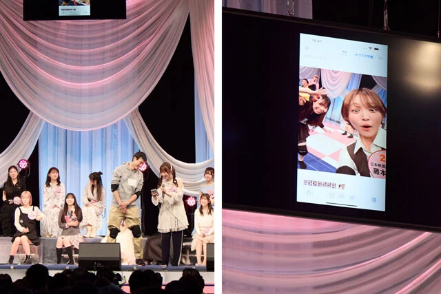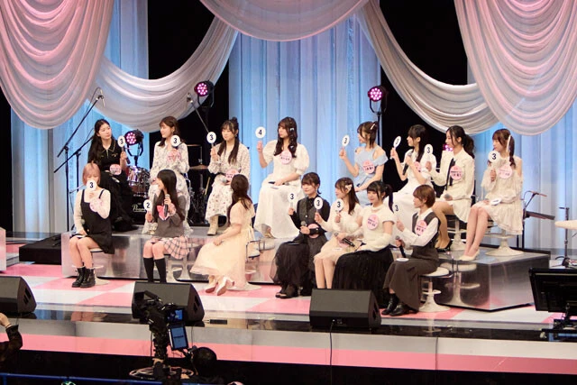 続いては、番組でも放送されたことのある視聴者参加型の交流企画「フジコーズファン感謝祭 ベストカップル決定戦」を卒業式バージョンにリメイクしたコーナー。会場内にいるファンの中から、開演前に行われた「騎乗糸通し」(ロデオマシンに乗りながら針に糸を通す時間を競う競技)の上位4名が、代表としてステージ上に。推しフジコとペアを組み、ベストカップルを目指す。上位4名に選ばれたのは、それぞれ山下未愛推し、三好菜乃推し、髙村栞里推し、藤本理子推しのファン。