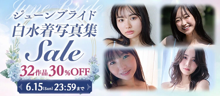 そんなわけで【週プレ グラジャパ!】では、現在「ジューンブライド白水着写真集セール」を開催中です! 6月15日(日)までの期間限定で、白い水着や白い衣装が登場するデジタル写真集32作品を、30%OFFでお届け。