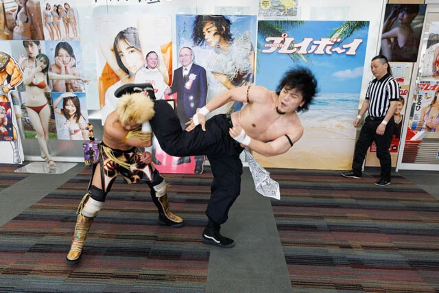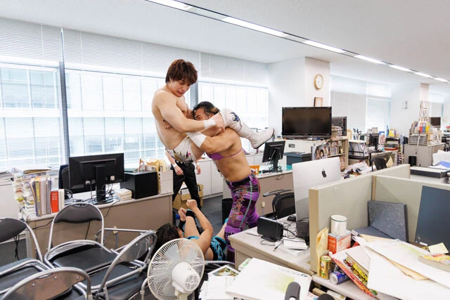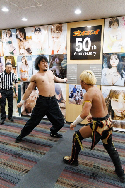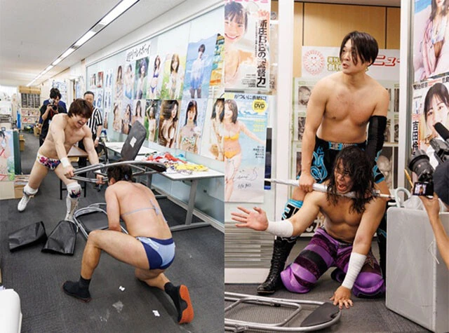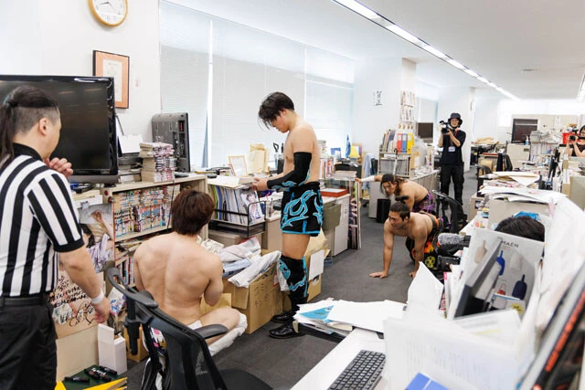 某日早朝、集英社の週刊プレイボーイ編集部にて、DDTプロレスリングのレスラーたちによる試合"編集部プロレス スペシャルマッチ"2試合が行われた。