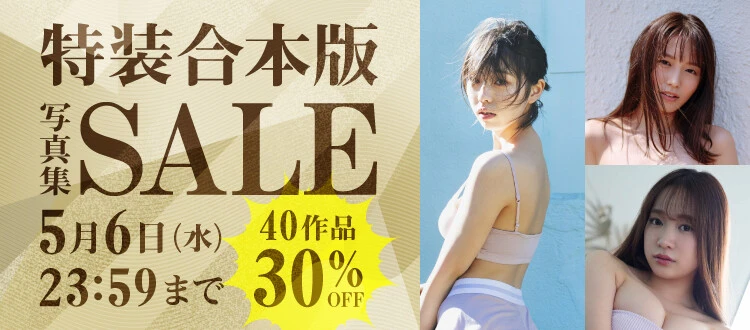 推しモデルの作品をまとめてお得に楽しめるのが特装合本版。GWのお供におすすめしたい特装合本版をさらにお得にゲットできるセールが開催! 【週プレ グラジャパ!】では、2026年4月20日(月)から5月6日(水)の期間限定で「特装合本版写真集セール」を開催いたします。一度の購入でたっぷり楽しめる合本版写真集40作品を30%OFFでお届け。ゴールデンウイークはオトクにたっぷりグラビアを楽しもう! それでは、対象商品の中から厳選した3作品のレコメンドをご覧ください!