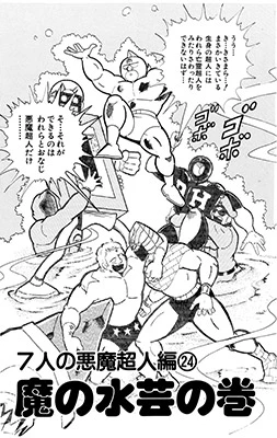 3代目グレートと共にエクサベータ―たちに挑むキン肉マン。グレート初代の技、2代目の魂を受け継いだような戦いぶりで優位に試合を進めていく。しかしエクサベータ―たちが強力なツープラトン攻撃で襲い掛かり――!?